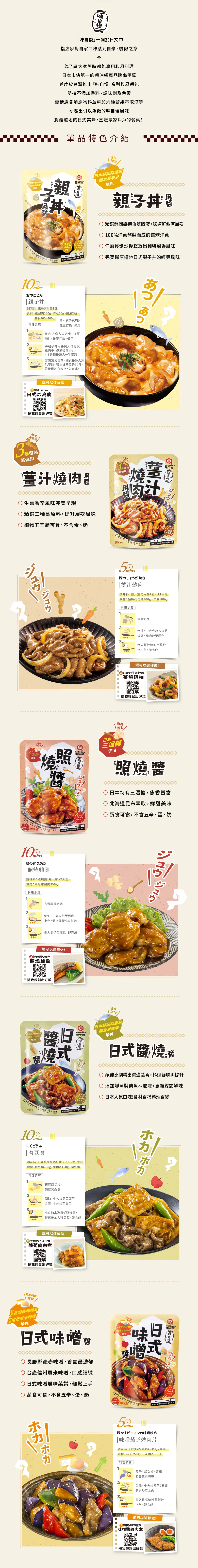★全系列不添加調味劑、焦糖色素、香料外,並加入6種蔬果萃取液(六種為:冬瓜、西洋芹、紅蘿蔔、蕃茄糊、蘋果、香菇)取代一般之甜味劑添加,以天然蔬果萃取提升味覺中之鮮甜,讓醬包口味層次更加豐富。